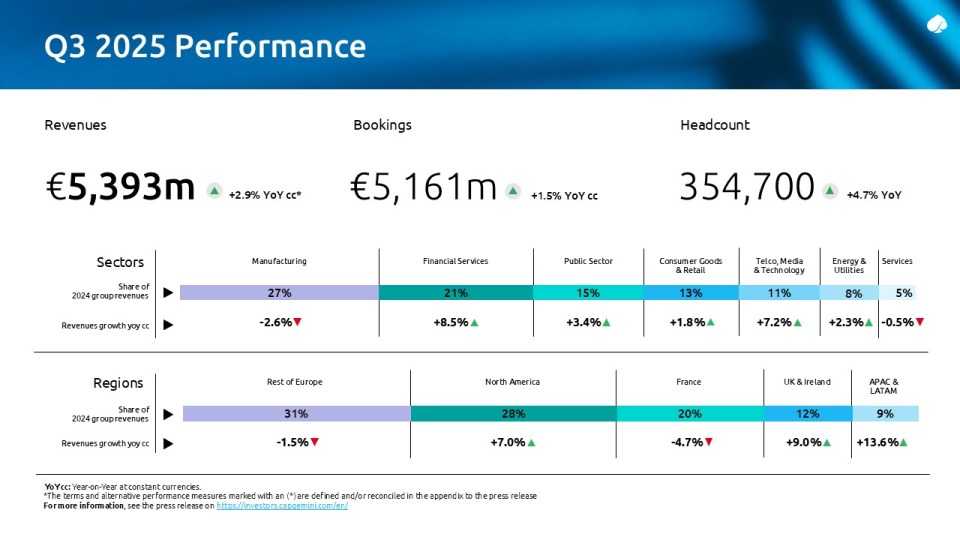 Aiman Ezzat, Chief Executive Officer, accompanied by Nive Bhagat, Chief Financial Officer, will comment on this publication during a conference call in English to be held on October 28th at 8.00 a.m. Paris time (CET).