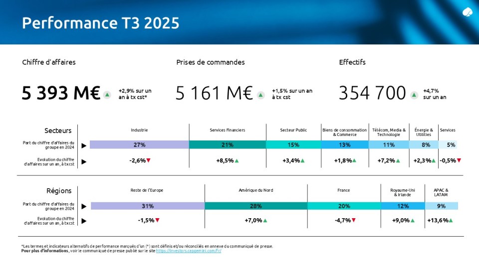 Chiffre d’affaires de Capgemini au 3ème trimestre 2025